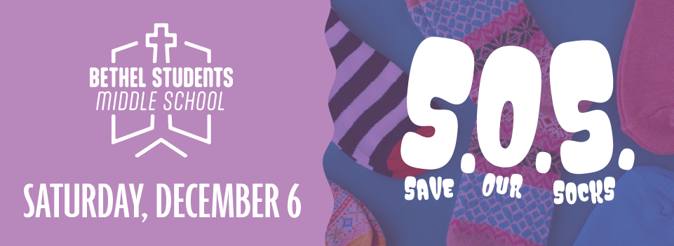 Save Our Socks (S.O.S.) is a game played across the entire church, where students must avoid getting tagged while trying to find a couple of hidden items within the church. They can defend themselves by throwing socks at the taggers, which freezes them in place temporarily. But if they get tagged, they become a tagger and are “allergic” to socks. This game is a great time for students to run around, strategize, and try to escape the taggers. Students are encouraged to invite their friends.